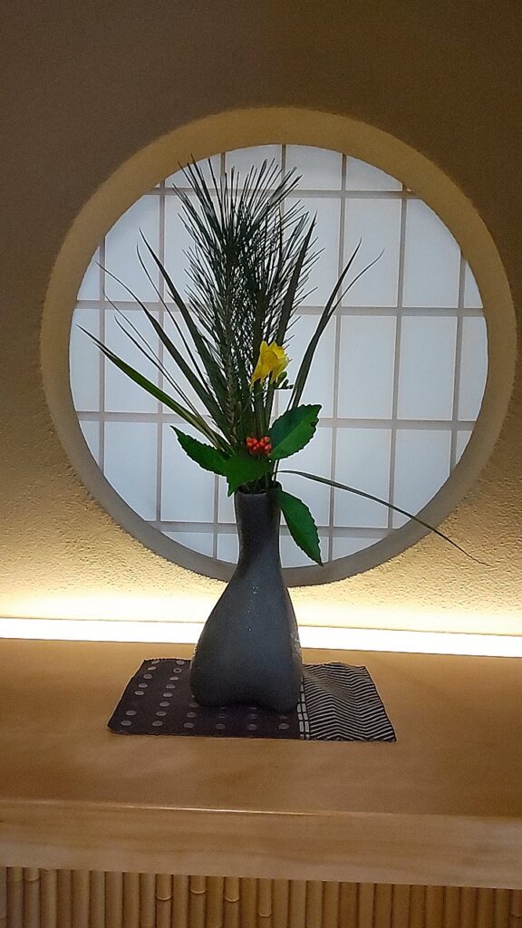 宿泊先では、お正月設えのお花と